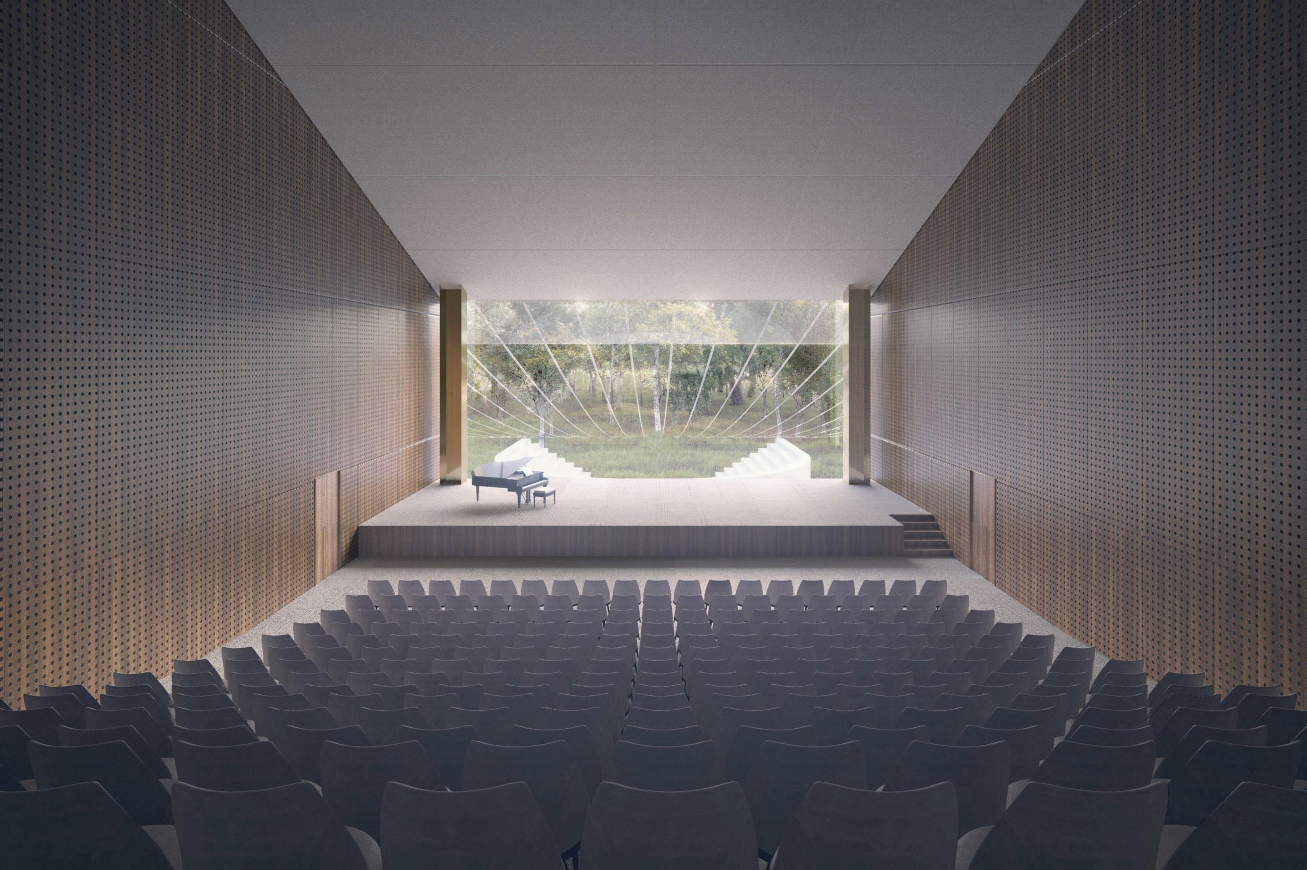 The design of the Philharmonic places special emphasis on its relationship with the Museum of the Revolution’s platform and the surrounding park landscape.